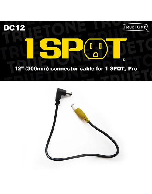 DC12 - 5.5 x 2.1mm plugs. 12" (300mm) connector DC cable with right angle connector. For use with 1 SPOT power supplies or with most other brands.