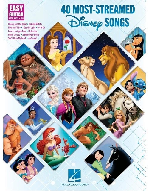 Even novice guitarists can play their favorite Disney songs with this great collection of 40 favorites from movies like Beauty and the Beast, Frozen, The Lion King, Moana, and more! Book includes notes and tab to help to make learning easy. Songs include: Be Our Guest • Beauty and the Beast • Can You Feel the Love Tonight • Colors of the Wind • Do You Want to Build a Snowman? • A Girl Worth Fighting For • Go the Distance • Hakuna Matata • How Far I'll Go • Just Around the Riverbend • Kiss the Girl • Let It Go • Reflection • Under the Sea • When Will My Life Begin? • A Whole New World • You'll Be in My Heart (Pop Version)* • You're Welcome • and more!