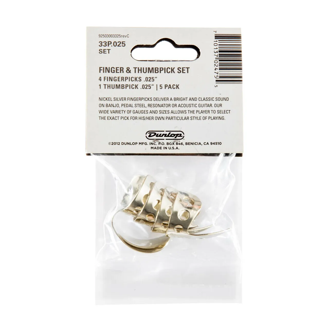 Dunlop 33P.025 Nickel Finger & Thumb Picks Pack .025 Gauge