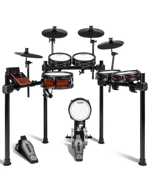 The Alesis Nitro Pro XL is a feature-packed electronic drum kit for drummers of all levels. With reinforced mounts and a robust steel rack, it’s built for stability and comfort. This kit features dual-zone mesh heads for the snare and toms, offering realistic response and a double-kick compatible kick tower for added versatility. Play along with 36 professionally recorded drum kits, connect via Bluetooth or aux, and jam quietly with the ultra-responsive mesh pads. Ideal for practice, recording, or jamming without disturbing others.