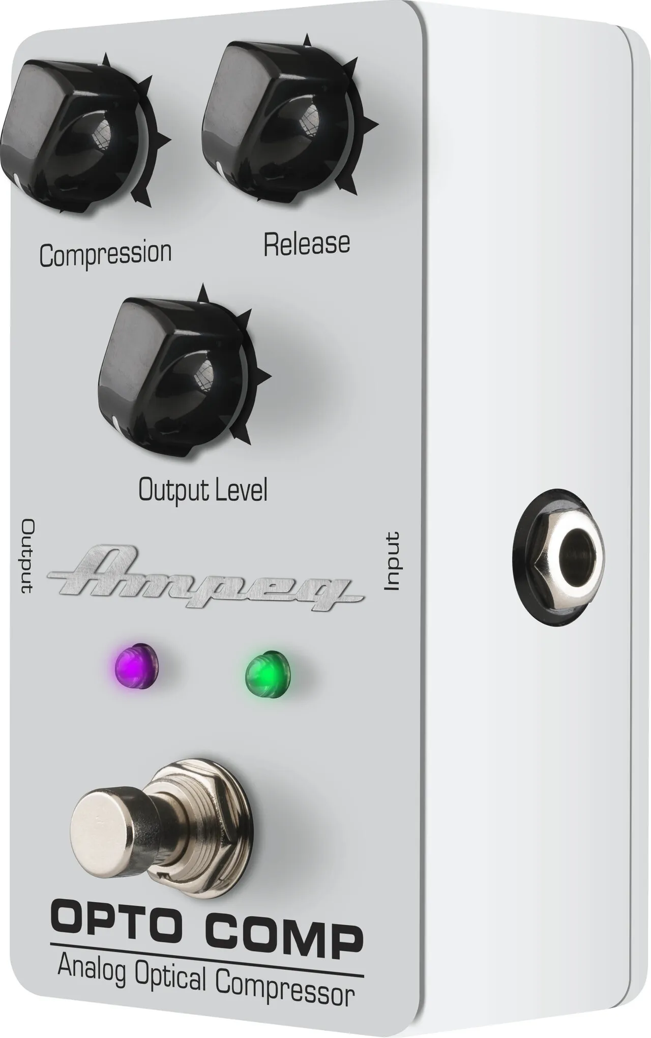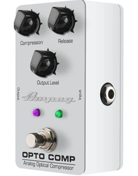 The Ampeg Opto Comp Analog Optical Compressor pedal utilizes an optical circuit to deliver smooth, vintage style compression to add headroom and sustain to your guitar or bass. Dial in a fast, subtle style to control peaks or crank up the compression to add a unique character. Bring your tone to new heights with the Opto Comp Analog Optical Compressor.