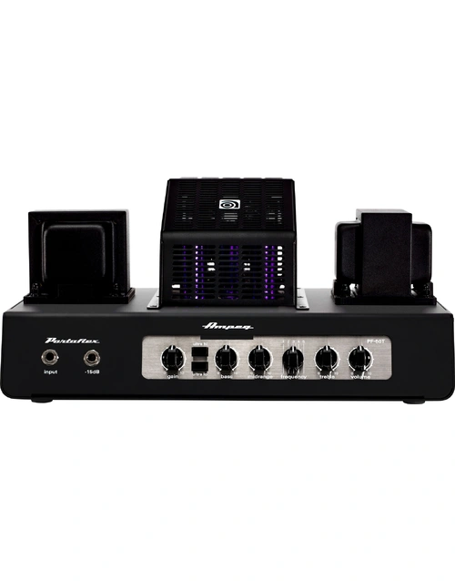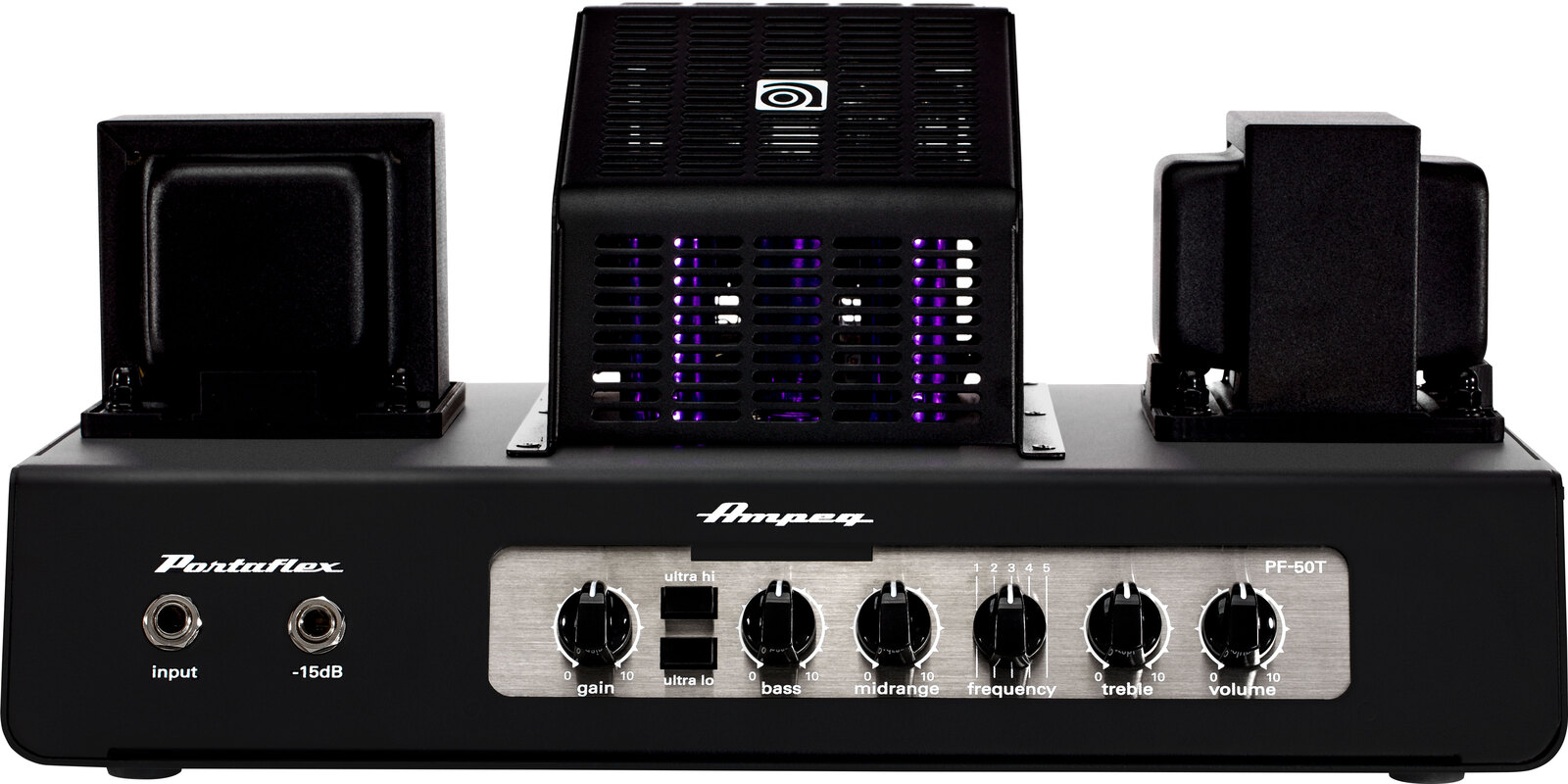 The legendary tone and portability of the all-tube Ampeg Portaflex amplifiers is faithfully reproduced in the PF-50T. This all-tube Portaflex head provides a harmonically rich and studio-worthy 50 watts of pure Ampeg tone to satisfy the most discerning bass player. Featur ing simple user-adjustable bias adjustment for easy tube replacement and pre-amp and transformer balanced direct outs for maximum versatility. Plus, no speaker load is required for silent recording or even use as a dedicated tube DI. Pair it with the PF-112HLF for the ultimate compact all-tube bass rig.