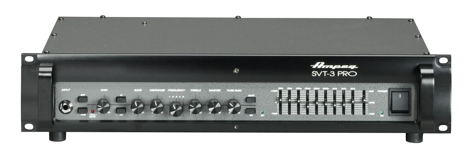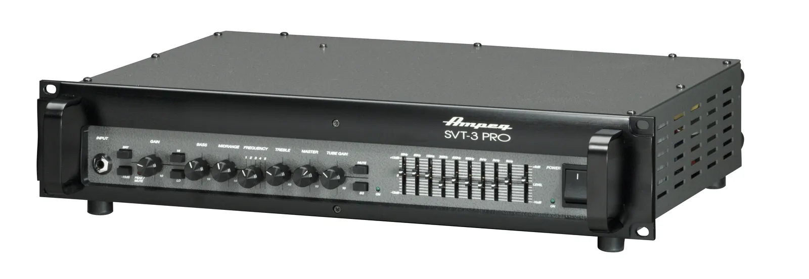 The SVT-3PRO offers SVT tone and performance (with a few modern enhancements) in a convenient rackmount design. Moderate size, significant power and genuine Ampeg Round Sound… everything a serious bassist needs. Dozens of the world-class artists depend on the SVT-3PRO to get the job done, day in and day out.