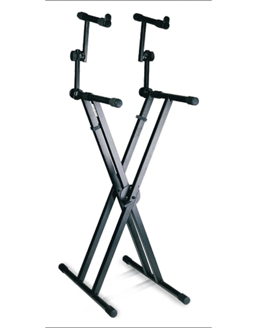 The KSD98D is a double layer keyboard stand with adjustable height. It is designed to hold two layers of Keyboards in the position most comfortable for you. The KSD98D has a foldable design which means packing up after a gig and loading out is quick and easy. It has rubberised feet and arms which will securely keep the stand in place, without damaging the surface it is on. It also means your keyboards or stage piano is held in place without risk of slipping. The KSD98D is comes in a black finish which is durable and looks great.