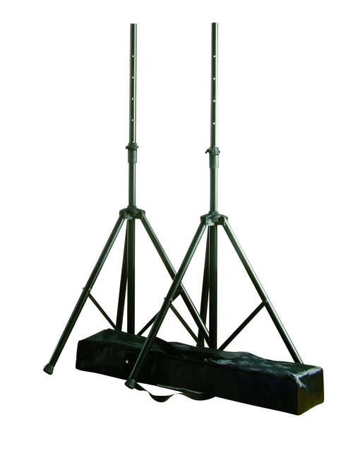 Get your Speakers off the floor with these great heavy duty Speaker Stands. Stable foldable Tripod design which will fit most normal pole mounts. Comes as a pair with a durable Bag for easy travelling. Adjustable from 108-196cm with locking pins to safely secure your height setting.