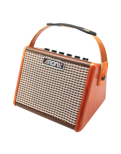 The Aroma AG-15A Acoustic Guitar Amp features 15 watts of power, perfect for practice, street performance, karaoke, band performance, outdoor playing, and a variety of other activities where you require a portable acoustic guitar amp. Rechargeable via 5V USB, the AGA-15A also features Bluetooth functionality, an ultra-efficient Class D Amplifier, and powerful energy storage via a lithium battery, in a compact size that's easy to carry.