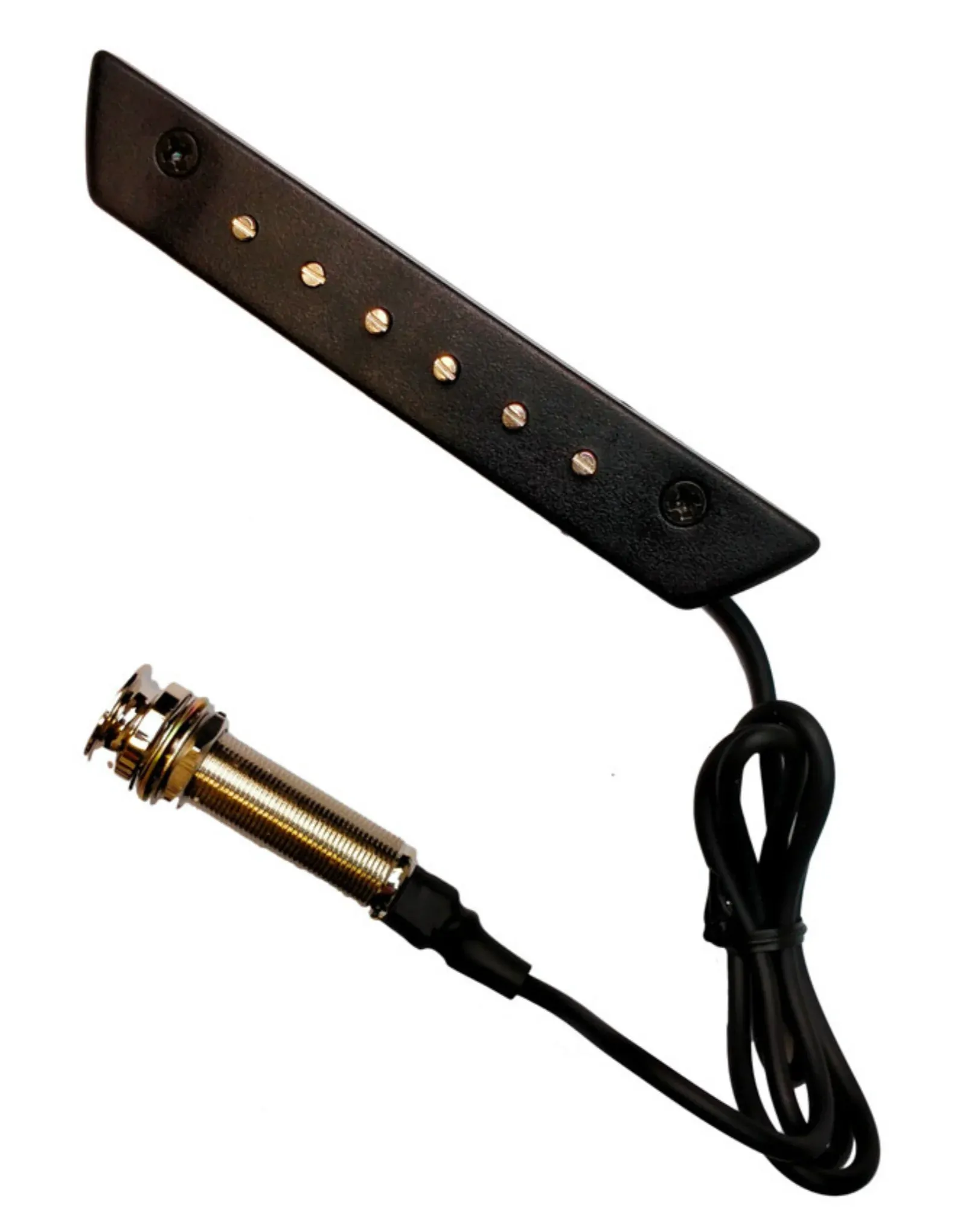 The Artec MSP-50 Single Coil Magnetic Passive Soundhole Pickup delivers a smooth, natural acoustic sound with the clarity and presence of a well-voiced single coil. Its slim, unobtrusive design fits comfortably in most soundholes without blocking resonance, preserving your guitar’s natural tone. Featuring individually adjustable pole pieces and a uniquely designed magnetic bar, it ensures even string balance across your playing dynamics. The built-in volume and tone controls offer quick on-the-fly adjustment, while the integrated mounting clamps with foam rubber slots protect your instrument’s finish. With a nickel-plated endpin jack and a 60cm cable, the MSP-50 is ready for performance or recording straight out of the box.