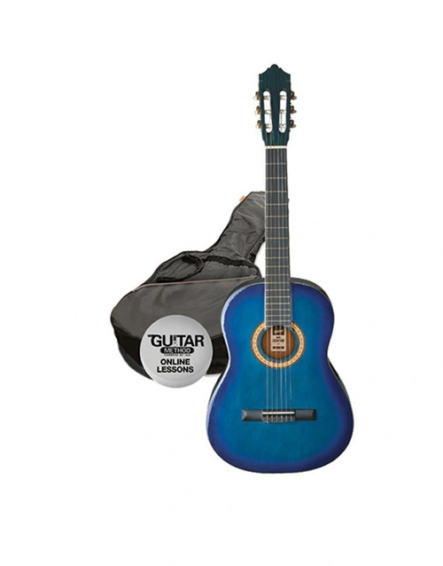 The SPCG Series is a great introductory Starter Pack. The pack includes a Gig Bag, with Online Lesson Packs. Available in six fun colour finishes including Amber (AM), Black (BK), Pink (PK), Transparent Purple (TP), Transparent Red Burst (TRB) and Transparent Blue Burst (TBB) - this Classical is a 3/4 sized slim-line bodied guitar great for those interested in lighter strings to practice classical style playing and finger picking styles on.