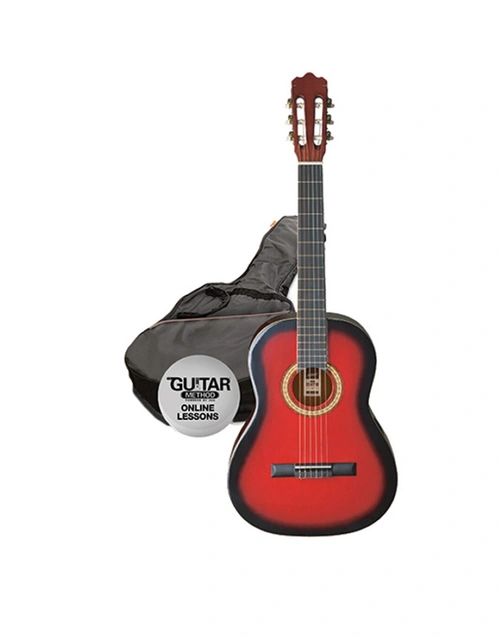 The SPCG Series is a great introductory Starter Pack. The pack includes a Gig Bag, with Online Lesson Packs. Available in six fun colour finishes including Amber (AM), Black (BK), Pink (PK), Transparent Purple (TP), Transparent Red Burst (TRB) and Transparent Blue Burst (TBB) - this Classical is a 3/4 sized slim-line bodied guitar great for those interested in lighter strings to practice classical style playing and finger picking styles on.