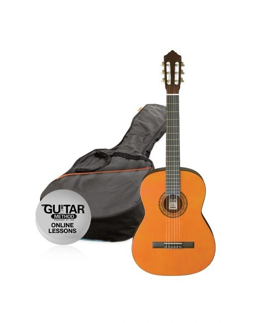 The SPCG Series is a great introductory Starter Pack. The pack includes a Gig Bag, with Online Lesson Packs. Available in six fun colour finishes including Amber (AM), Black (BK), Pink (PK), Transparent Purple (TP), Transparent Red Burst (TRB) and Transparent Blue Burst (TBB) - this Classical is a 3/4 sized slim-line bodied guitar great for those interested in lighter strings to practice classical style playing and finger picking styles on.