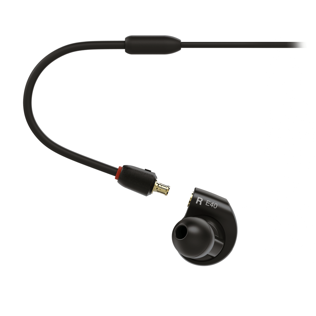 The proprietary dual phase push-pull driver design of the ATH-E40 professional in-ear monitor headphones provides improved fidelity and efficiency. These headphones deliver powerful bass along with balanced mid and high frequencies to convey the full emotion of the music from the stage to the street. The ATH-E40 features specially designed housings that provide incredible isolation. The isolation – and the comfort – are enhanced by the four sizes of included silicone eartips (XS/S/M/L), which allow you to create a custom fit. The headphones also come with a detachable 1.6 m (5.2') cable, with newly developed A2DC (Audio Designed Detachable Coaxial) connectors at the headphones and a 3.5 mm (1/8") stereo mini-plug output, and a carrying case.
