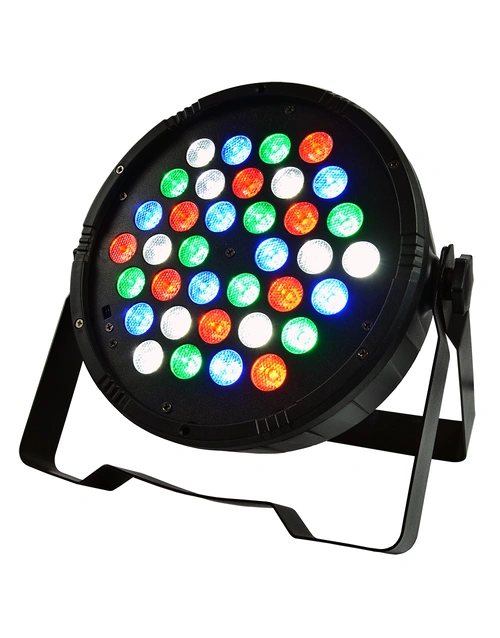 The Quad Pro-Flat LED Parcan is a high-powered slimline LED wash effect light with 36x 3W LEDs (Red, Green, Blue, and White) that provide a bright and vibrant coloured wash for your stage, dance floor, or venue.