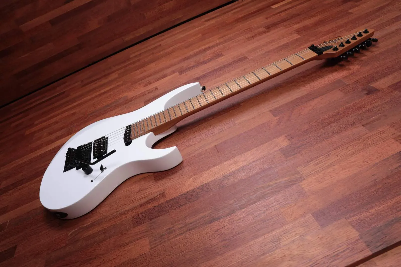 A super shreddable Roasted Maple neck with 16" radius Roasted Maple fingerboard and 27 medium jumbo stainless steel frets are perfect for endless shredding, while premium features like Balaguer locking tuners and a floyd rose ensure solid tuning stability.