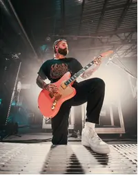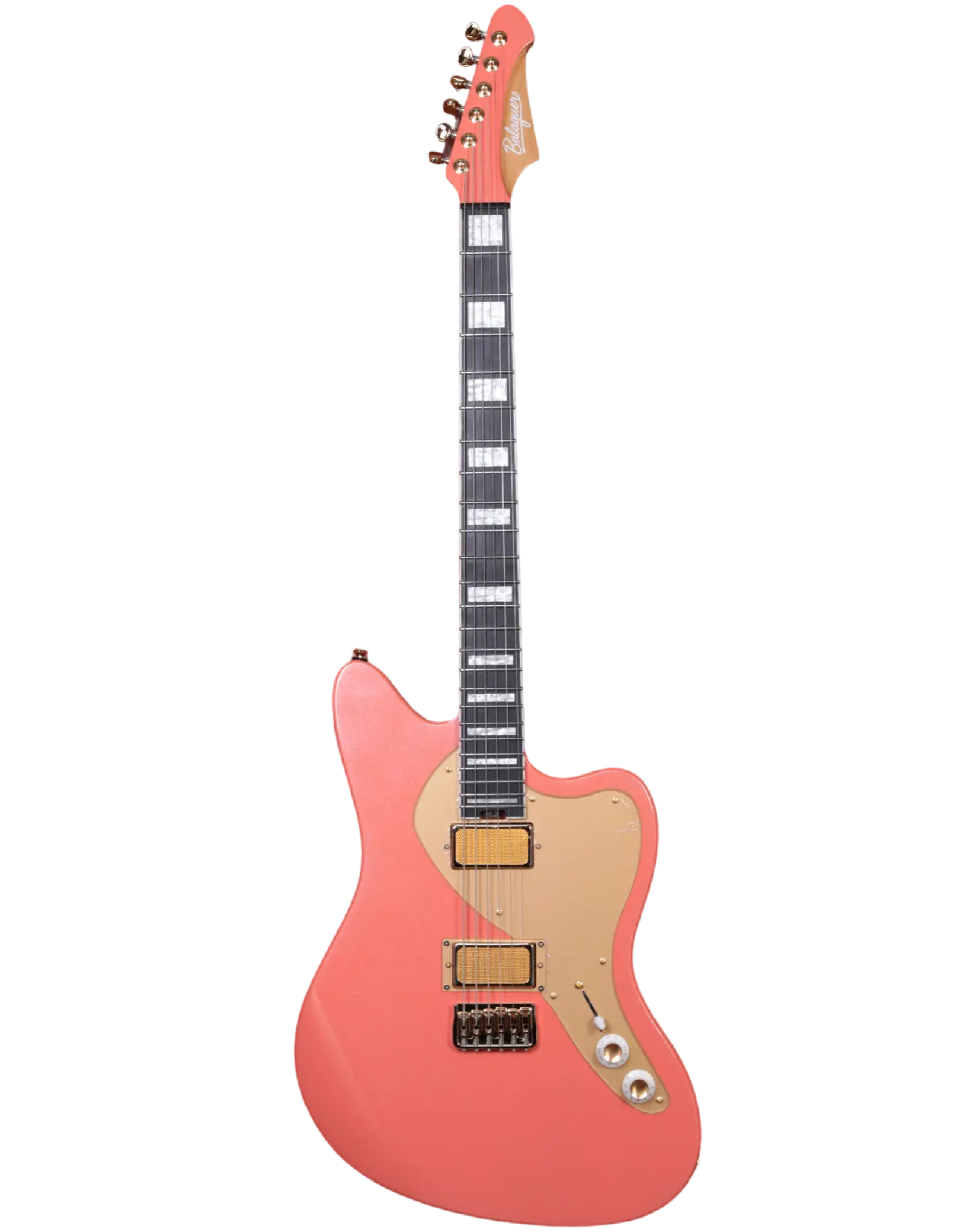 The Balaguer Growler T-Bar Tony Pizzuti Signature is a striking baritone guitar designed for modern tone and performance. With a 27" scale length, this offset masterpiece offers unmatched playability and versatility. Its mahogany body is adorned with a sleek gloss metallic guava finish and complemented by a custom gold pickguard. Featuring a roasted maple bolt-on neck, 24 stainless steel frets, and an ebony fingerboard with a 16” radius, this guitar ensures smooth playing and durability. Premium appointments like locking tuners, a Graphtech nut, Luminlay side dots, and a Hipshot bridge add professional-grade reliability. The gold foil Balaguer Feral humbucker set delivers bold tones, with coil-splitting versatility via the push/pull tone knob.