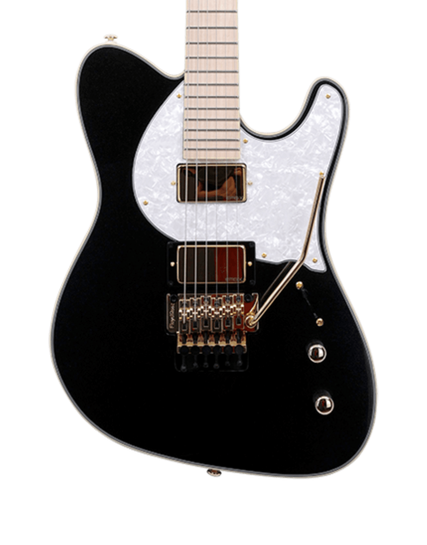The Balaguer Thicket TM, finished in Gloss Metallic Black, is a slick looking vintage-offset-inspired surprise shredder, loaded with a set of EMG 81X/85X active humbuckers and a Floyd Rose Tremolo. The signature model of Atreyu's Travis Miguel packs a punch, and does so in style, with a 5-piece Maple/Walnut neck, Maple fretboard, gold hardware and white pickguard. A set of locking machineheads and a Floyd Rose tremolo keep the Thicket's tuning stable and accurate and take care of all your whammy needs, while a coil-split on the tone knob expands the EMG's versatility.