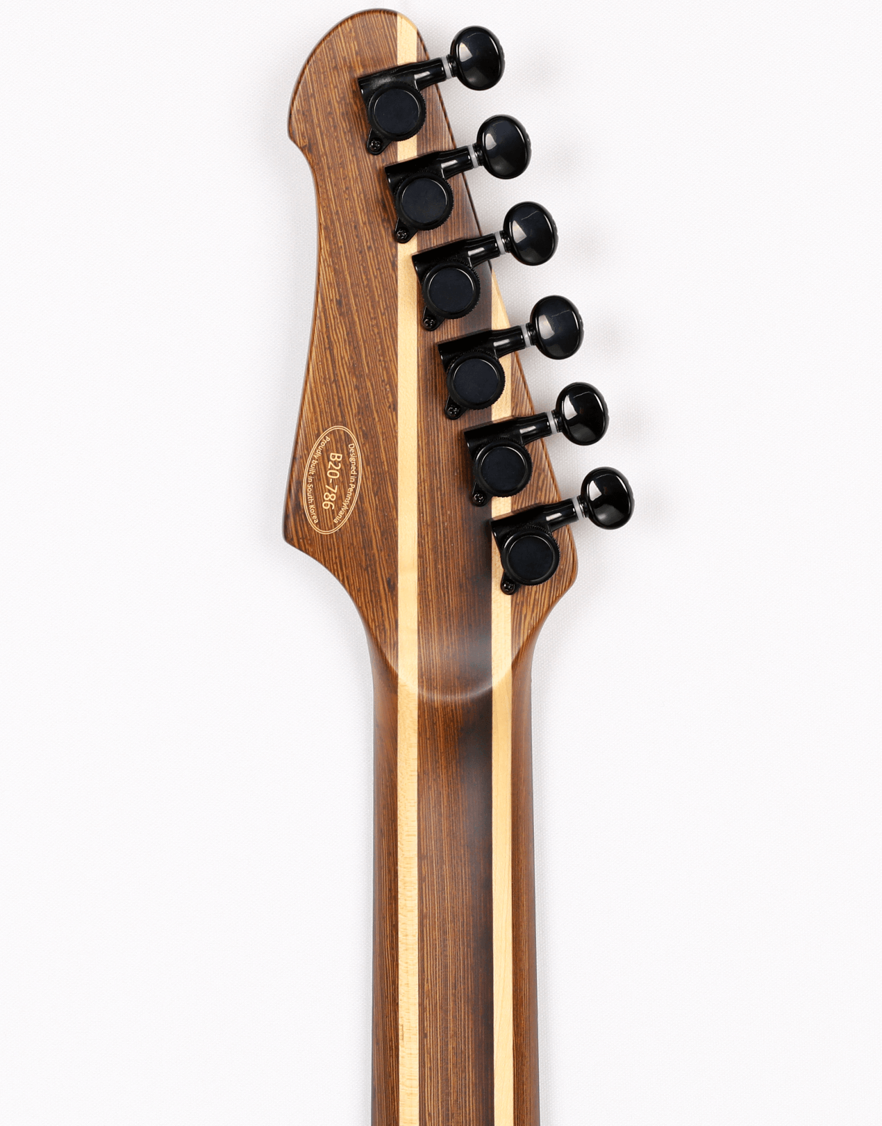 A thin C-profile Wenge/Maple neck with 16" radius Ebony fingerboard and 22 medium jumbo stainless steel frets offers hours of comfortable playability, while premium appointments, like an Evertune hardtail bridge, Balaguer locking tuners and a Graphtech nut keep your Lightbringer's tuning stable and accurate. The Evertune bridge is a patented design that perfectly balances the string tension of your guitar, so that, once you tune up, the Evertune stays in tune and maintains your intonation forever, no matter how hard you play!