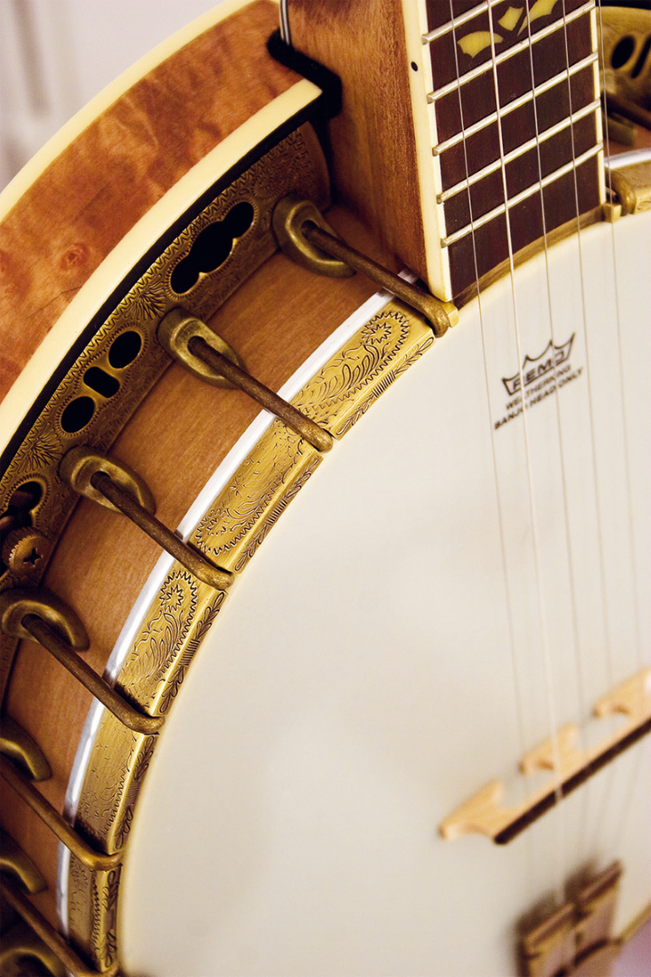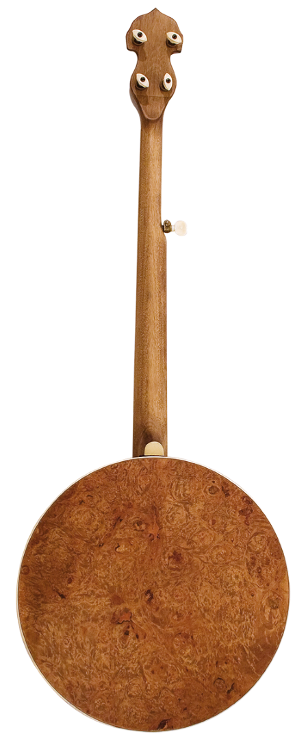 The Barnes & Mullins BJ500M Troubadour 5 String Banjo, pays tribute to this long-standing brand. Named after Barnes & Mullins' monthly magazine published in 1895, the Troubadour combines exceptional build quality, premium tonewoods and appointments, and a head-turning aesthetic. A patterned rolled brass tone ring and flange give the Troubadour an antique appearance, while a stunning closed back Burl Maple resonator, with matching Hard Maple neck and Laminated Maple rim, deliver an authentic, punchy bluegrass tone that sounds as great as this banjo looks. Geared machine heads ensure improved tuning stability. The BJ500M also features a rolled brass tone ring to improve the volume and projection of the instrument.