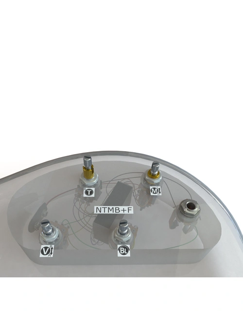 Bartolini's most popular preamp for decades, the NTMB+F is a 3-band tone control preamp with fully independent Bass, Mid and Treble controls. It is well known to professionals for its very low noise and wide boost and cut range for aggressive control. The voice is clear, transparent, and strong. The treble frequency is set high for maximum available brightness.