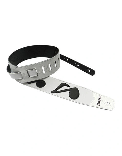 All in Synthetic, prevents the absorption of sweat, sliding over the shoulder of the musician. It has stitched musical notes are a great complement to your instrument, it is an electric guitar, acoustic guitar or bass. Designed to evenly distribute the weight of the instrument on the musician's body. Variable length between 100 and 150cm in length and width of 6.0cm.