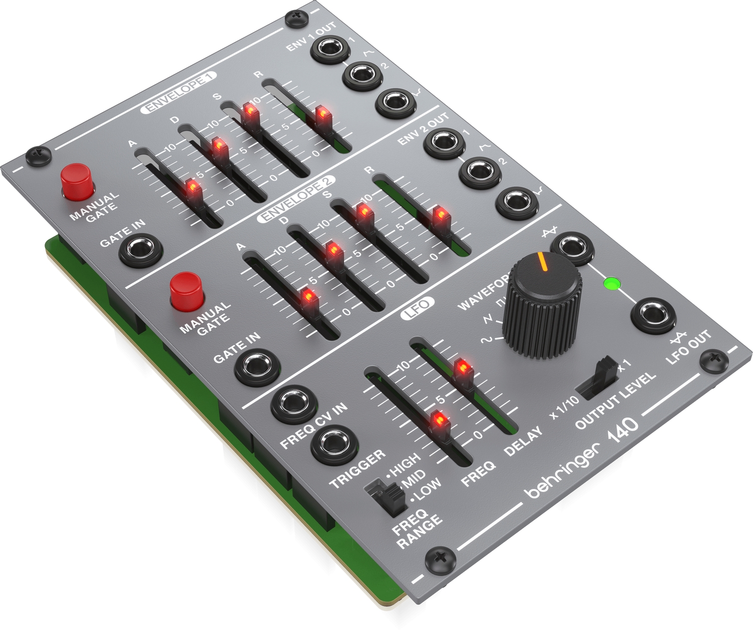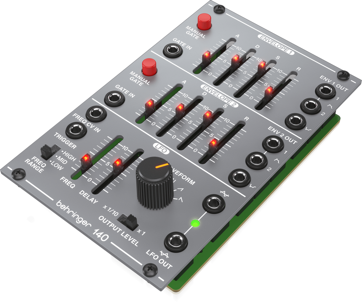 This is the Behringer SYSTEM 100 140 DUAL ENVELOPE/LFO. An authentic reproduction of the original “System 100M” circuitry from the 80’s that can fit in a standard Eurorack case. The best part? It’s at a very affordable price. Mix the 140 DUAL ENVELOPE/LFO in with your existing rig or start your modular synth journey from here. Either way you’re sure to have a lot of fun.