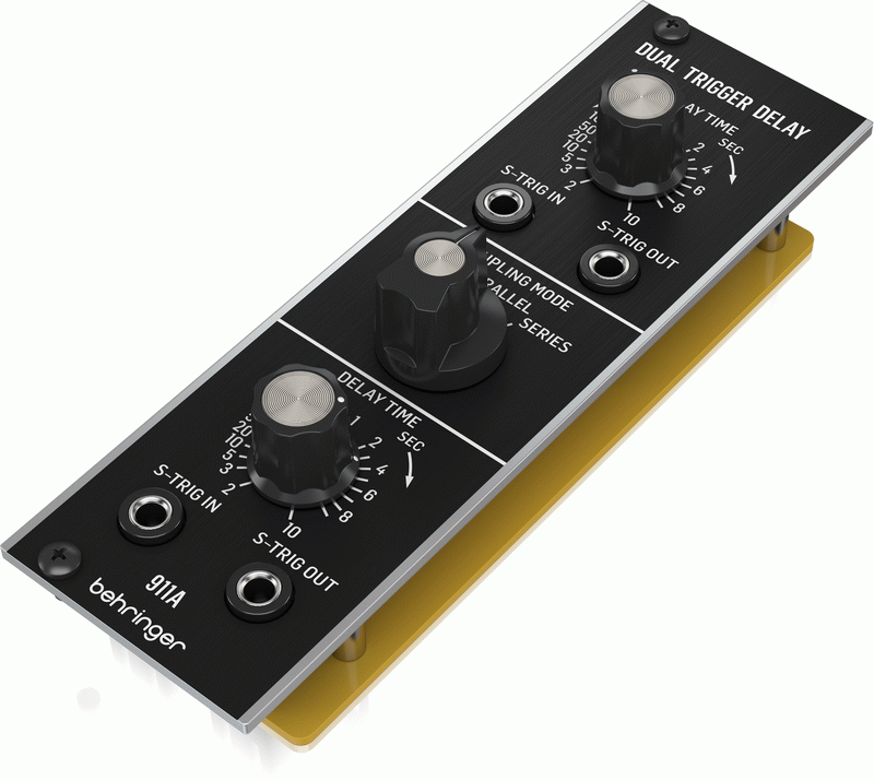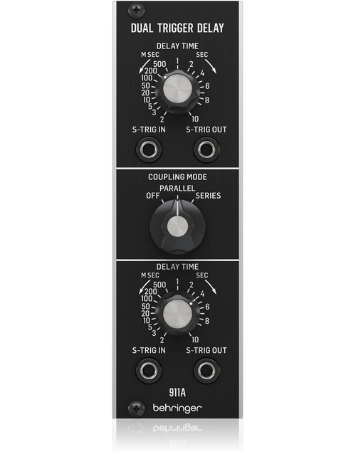 Two channels of delay potential. The Behringer System 55 911A Dual Trigger Delay offers a delay time ranging from 2 milliseconds to 10 seconds. This provides a huge scope for editing the input signal. Two independent channels each feature dedicated S-trig inputs and outputs. These channels can be used in multiple different varieties. Use the System 55 911A in parallel, series or independently, selectable by the coupling mode switch.