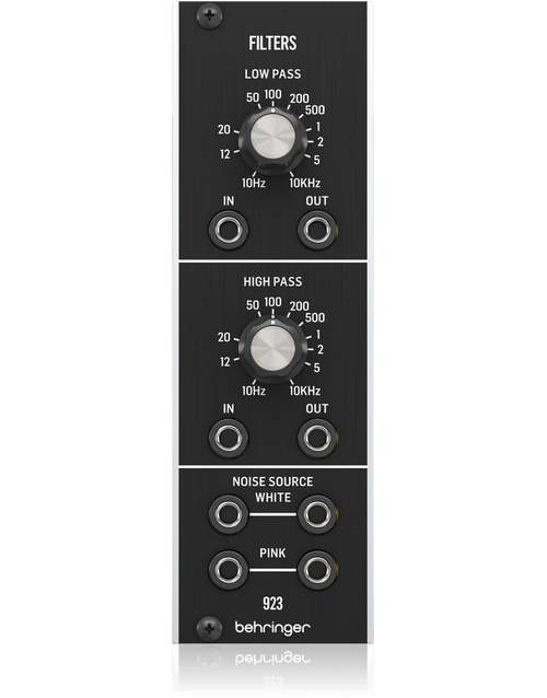 Vintage-sounding 923 dual filter module from the ‘70s. Authentic reproduction of the circuitry from the “Modular 35 & 15” Series. Separate Lowpass and Highpass filters with dedicated frequency cutoff controls. Each filter features independent audio inputs and outputs.