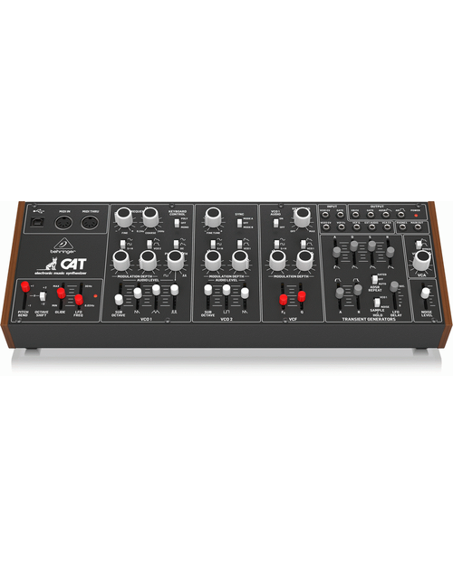 The 1970s spawned the first truly portable analog synthesizer, and while it was quickly adopted by lots of renowned musical artists including Jan Hammer, Chick Corea, Rick Wakeman, Jean-Michel Jarre, Isao Tomita and Keith Emerson to name a few, it was somewhat temperamental and very expensive. In 1975, a new synth strolled into town. The Cat as it was called was an analog, duophonic, three octave synthesizer that was very similar to the ARP Odyssey. Its keyboard would produce two control voltages that were routed into its two VCOs. An ultra-affordable and even more feature-packed homage to that iconic synthesizer comes in the form of the Behringer CAT. Conjure up the virtually any sound imaginable with incredible finesse and ease. The pure analog signal path is based on authentic VCO, VCF and VCA designs in conjunction with 4 variable and simultaneous oscillator shapes and Duophonic/Paraphonic capabilities. Owning a CAT is like having your own personal time machine, enabling you to freely embrace the past – or shape the future. And the best of all, it doesn’t scratch.