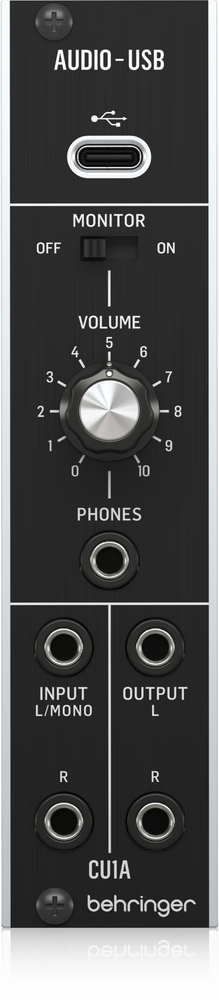 By integrating the CU1A into your setup, you’ll get high-resolution converters that provide the best audio quality for recording and/or playback. The CU1A is also powered via USB C ensuring that no power is drawn away from your modular synth.