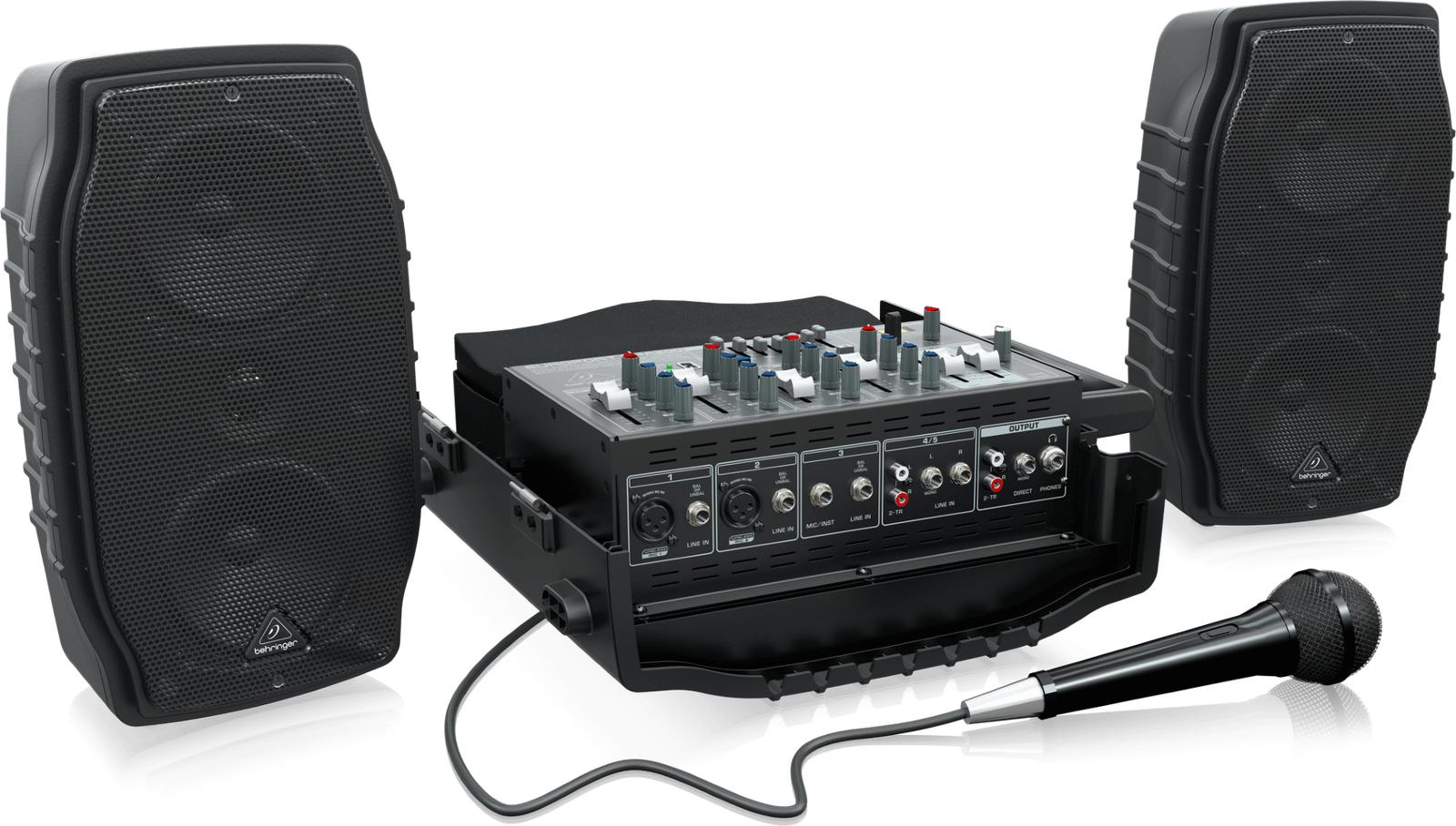 Armed with 200 Watts of massive output power, the PPA200 sets up in just minutes and provides room-filling sound, all in a rugged, carry-on style briefcase that is perfect for everything from parties to press conferences to sporting events. Everything you need is included in a convenient and easy-to-use package: two detachable speakers; a high-quality, “wireless-ready” 5-channel mixer; a Behringer XM1800S microphone with a 20' cable and clip; plus two speaker cables so you're ready to go.