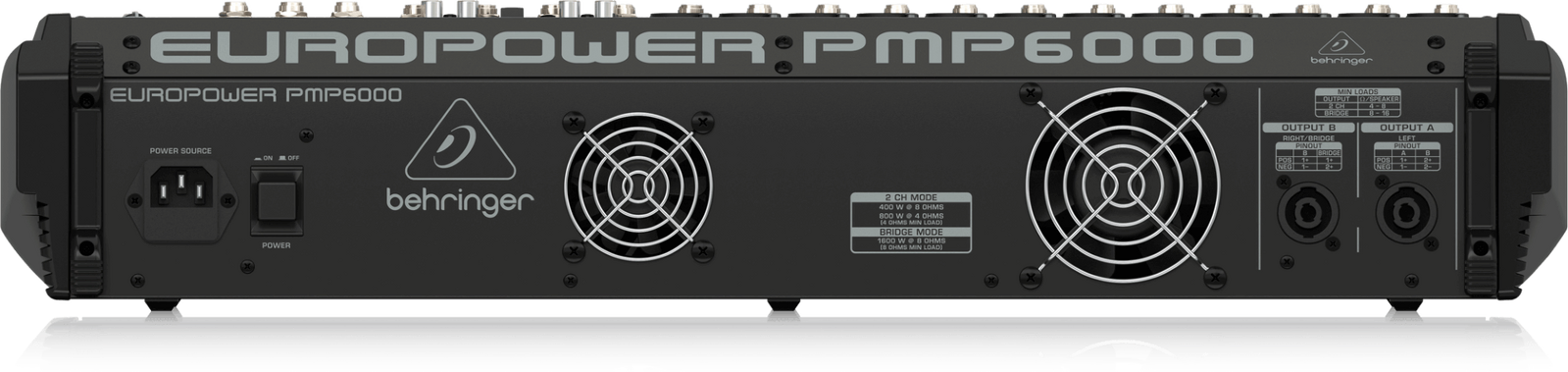 The powerful PMP6000 gives you the choice of 2 x 800-Watt stereo or 2 x 800-Watt dual mono mode (Mains powered output, 1 Monitor send signals through the second powered input) or 1,600-Watt bridged mono sound. Whether the center of attention happens to be a folk trio, a speech, or a synth-rock band with mind boggling stereo patches, the PMP6000 can accommodate with ease. This sonic versatility also makes it an excellent choice for churches where vocals and stereo recordings often share face time.