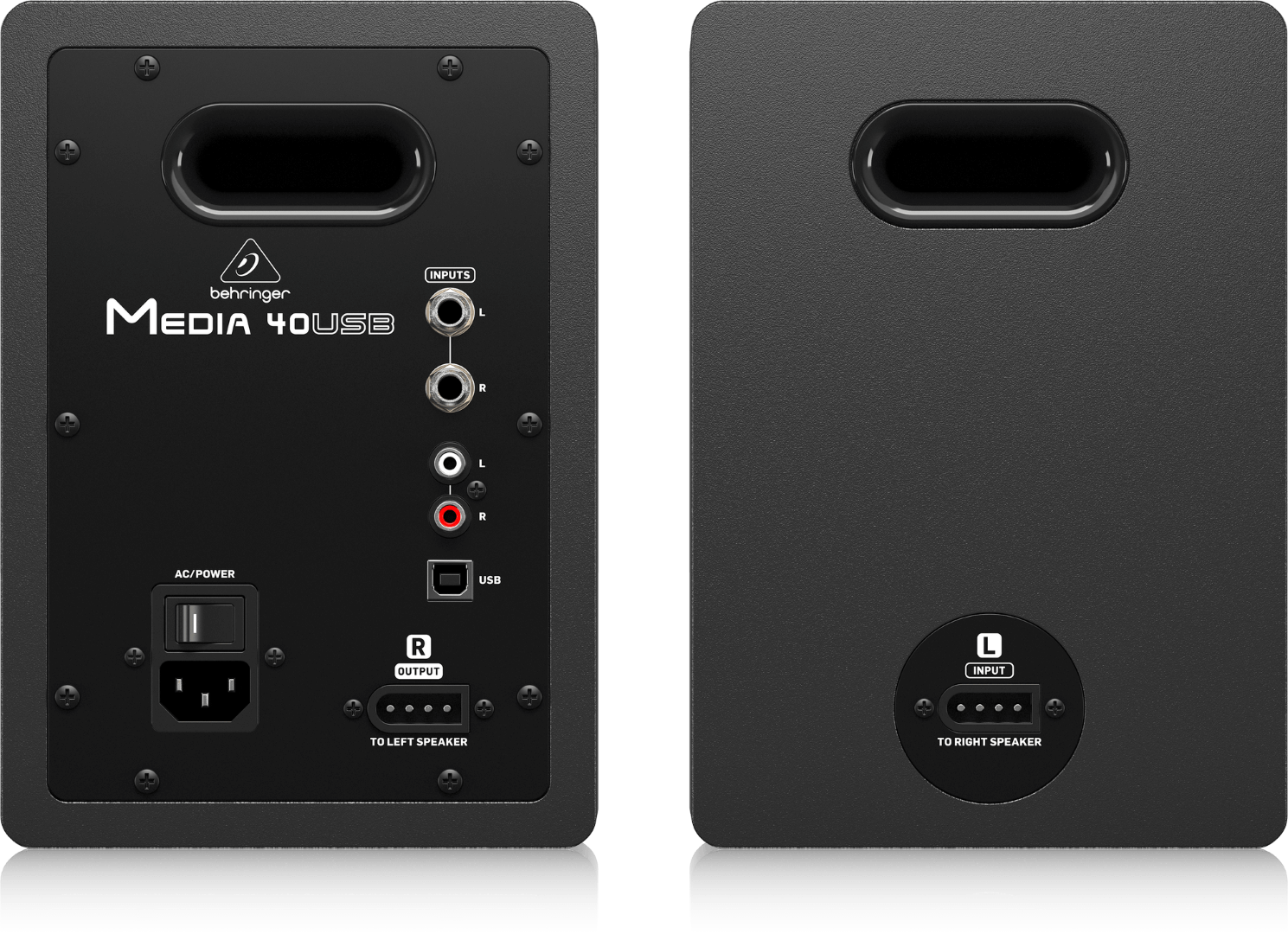 The Behringer MEDIA 40USB Studio Monitors (Pair) combine exceptional connectivity via USB and analog input in a bi-amped, two-way speaker configuration, providing the perfect sonic upgrade for any audio or video application. You’re sure to want a pair for every computer workstation in the house – and they make exceptional add-on speakers for flat-screen TVs and self-contained AV media players - as well as the perfect monitor solution for college dorm rooms or anywhere enjoying music is a must.