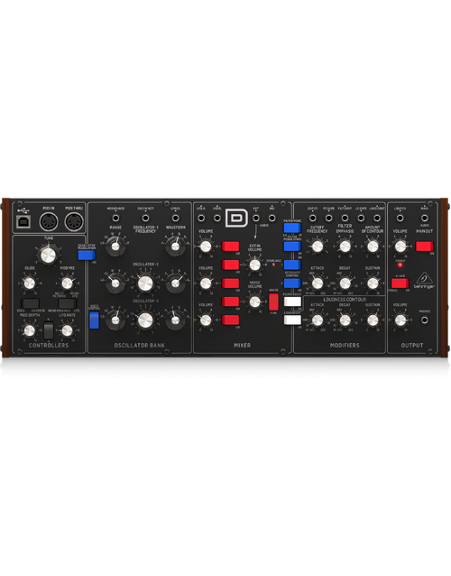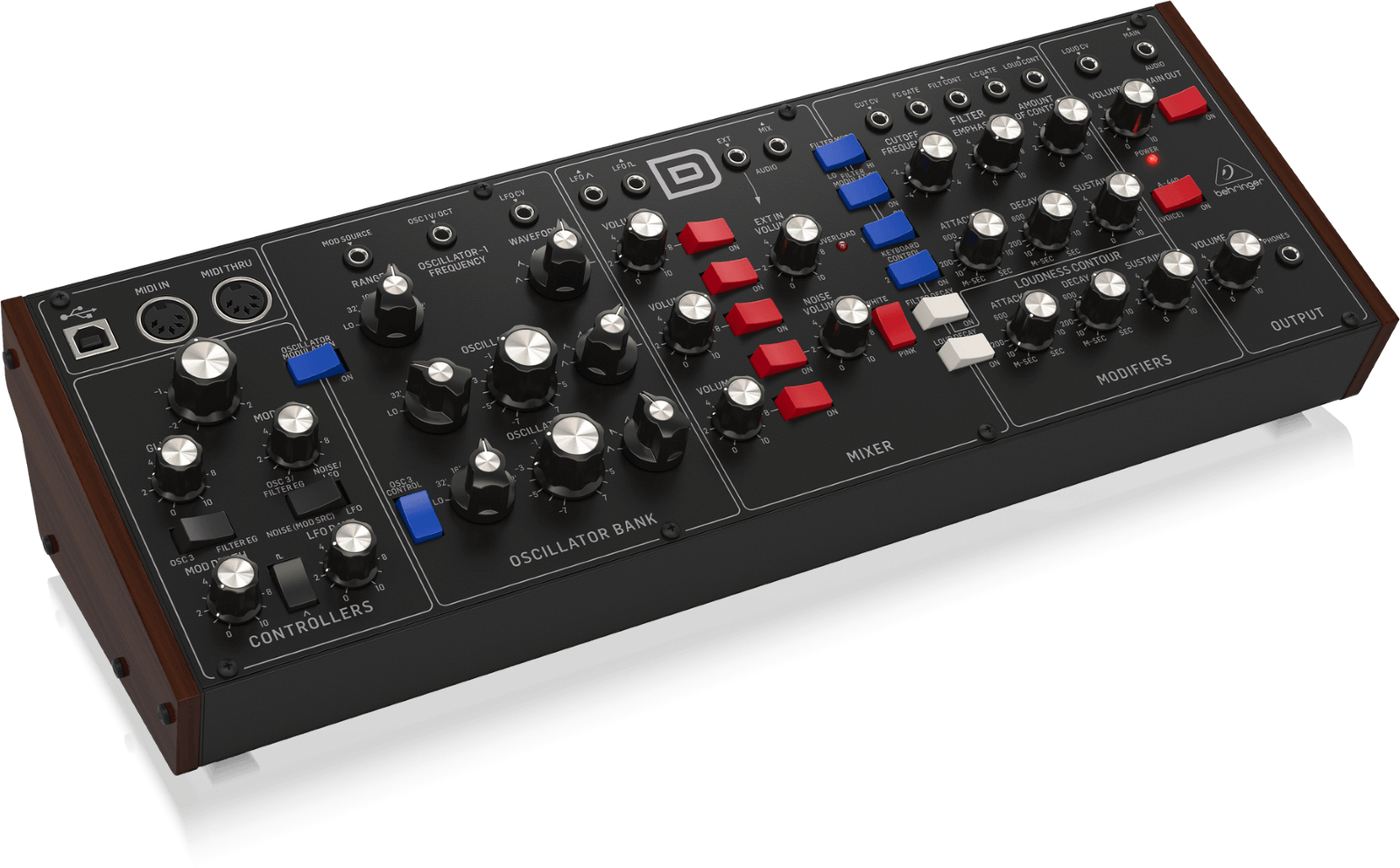The 1970s spawned the first truly portable analog synthesizer, and while it was quickly adopted by lots of renowned musical artists including Jan Hammer, Chick Corea, Rick Wakeman, Jean-Michel Jarre, Isao Tomita and Keith Emerson, it was somewhat temperamental and very expensive. An ultra-affordable homage to that iconic synthesizer, with all the features of the original and some modern upgrades, the Behringer MODEL D Analog Synthesizer lets you conjure up virtually any monophonic sound imaginable with incredible finesse and ease. The pure analog signal path is based on authentic VCO, VCF, VCA and ladder filter designs in conjunction with a dedicated and fully analog triangle/ square wave LFO. And when it comes to protection and convenience, the MODEL D can even be mounted in a standard Eurorack, making it ideal for the studio and/or the road. Owning a MODEL D is like having your own personal time machine, enabling you to freely embrace the past – or shape the future!