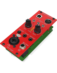 Guitar and Audio to MIDI, USB and CV Converter Module for Eurorack. Hi-Z and Low Cut functions to match your instrument for highest signal integrity. Gain control with up to 50 dB gain to connect mics and line level sources. USB MIDI function to directly connect with your DAW. Eurorack specs: 8 HP, +12 V 58 mA, -12 V 30 mA.