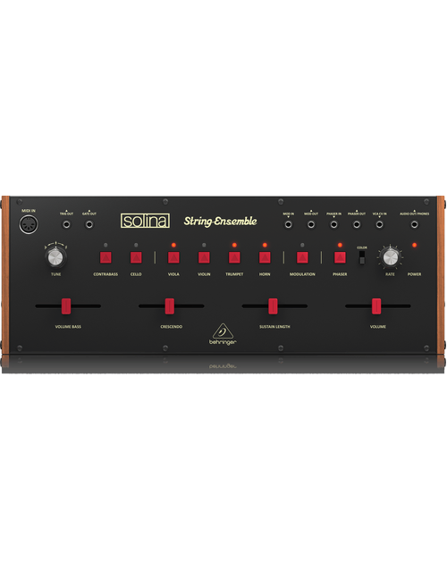 The Behringer SOLINA String Ensemble Analogue Synth Module Unit is a faithful recreation of the iconic '70s analogue synthesizer, meticulously designed to bring its classic sounds to modern musicians. Featuring violin, viola, trumpet, horn, cello, and contrabass instruments, along with controls for tuning, crescendo, bass, and volume, it faithfully captures the essence of the original revision B. Utilizing divide-down technology, this compact unit delivers the iconic multi-orchestral sounds in a package that seamlessly integrates into any setup.