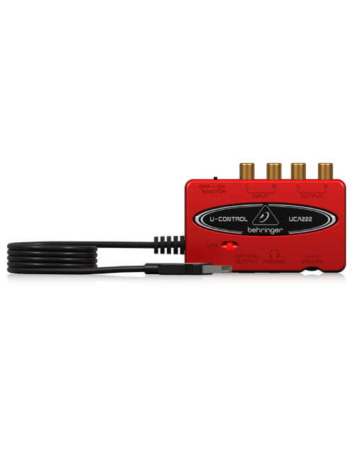 The U-CONTROL UCA222 allows you to connect instruments and other audio devices to your computer, effectively merging the analog and digital worlds. It accomplishes this by providing two analog mono Inputs and Outputs (for monitoring), USB connectivity and an additional S/PDIF optical output. The stereo headphone output features a dedicated level control and lets you listen to both the input and output.