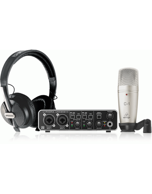 | Get a full recording studio "out of the box" including U-PHORIA UMC202HD USB audio interface, C-1 condenser microphone, HPS5000 studio headphones and more |