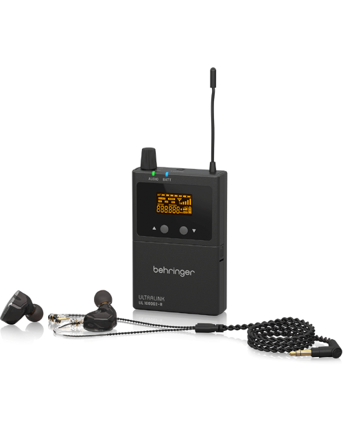 | UL 1000G2-R wireless belt-pack receiver and monitoring earphones, for the Behringer UL 1000G2 in-ear monitoring system |