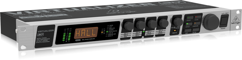 Get even more mind-expanding power for your keyboard, bass, guitar or vocals with the VIRTUALIZER 3D FX2000 effects processor. This amazing rack-mountable FX unit has 71 incredible algorithms, including true studio-grade stereo and 3D effects that will add a head-spinning new dimension to your sound, both live and in the studio. The FX2000 uses our RSM (Real Sound Modeling) technology to simulate acoustic environments with stunning accuracy. Effects options include powerful modulation, amp simulation, distortion and special effects, as well as effective dynamic and psychoacoustics processing. Performance is further enhanced through user-addressable high and low EQ and wave-adaptive Virtual Room reverbs.