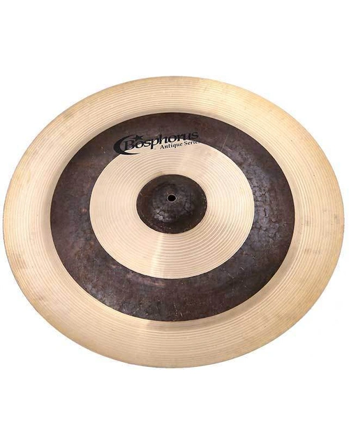 The Bosphorus Antique Series China, a clean, crisp cymbal. The top side features an un-lathed bell and an additional un-lathed strip between the bell and the edge. The bottom side of the cymbal is completely lathed in the traditional manner.
