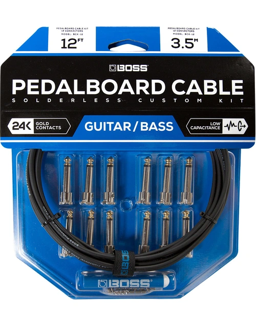 Want to save space on your pedal board, without sacrificing tone? Need a custom patch cable setup, but don't want the hassle of soldering? The BCK-12 doesn't require any cable stripping or soldering, each cable requires only the tightening of a single ground screw. The 12 compact bi-directional connectors included in the kit are specifically designed to make your pedal board set up as customisable as possible, allowing you to create six cables with either straight or right-angle connections, and place your pedals as close as 1cm apart.