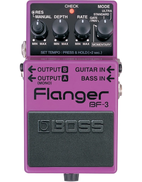 Building on the 20-year legacy of the famous BOSS BF-2, the new BF-3 flanger pedal gives guitarists and bassists an updated version of the classic BOSS flanger with the thickest stereo flanging sounds ever. Two new modes (Ultra and Gate/Pan) create stereo flanging with incredible depth--even Slicer-type effects and sounds that seem to "swirl" around the listener. An instant classic.
