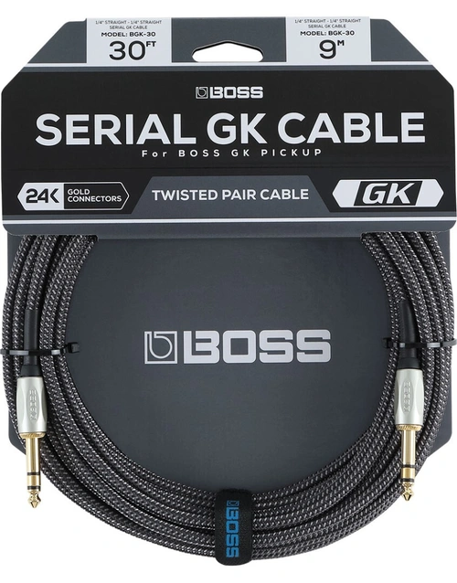 The BGK cable series delivers optimum performance with BOSS guitar synthesizer products that support the Serial GK digital interface, including the GK-5/GK-5B pickups and GM-800 module. Premium BOSS construction features include braided shielding, 24K gold-plated connectors, and a woven outer jacket for tangle-free use.