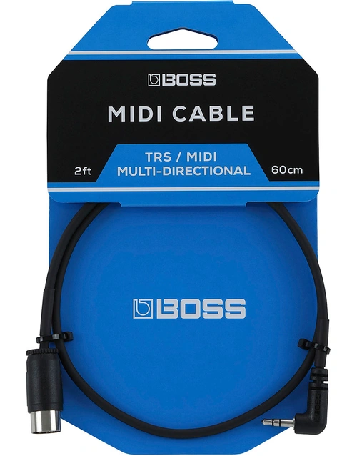 The BOSS Right Angle MIDI to Right Angle Mini TRS Cable (2' / 0.6m) is designed to maximise the potential of your BOSS gear with seamless MIDI connectivity. Featuring 3.5 mm TRS and 5-pin DIN connectors, this rugged cable allows you to connect BOSS pedals like the 200 series or EV-1-WL to other MIDI-equipped gear such as pedals, switchers, multi-effects units, and keyboards. The slim right-angle TRS plug and three-way cable adjustment on the 5-pin DIN connector make it easy to fit into tight pedalboard spaces. With oxygen-free copper wire and durable PVC shielding, this cable ensures reliable, noise-free performance. Whether you're connecting your BOSS gear to other devices or expanding your MIDI setup, this cable provides a flexible and high-quality solution.