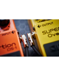 The BOSS BPC-4 Pancake Slimline Patch Cable is designed for maximum space efficiency in your pedal setup. With right-angle 1/4-inch pancake connectors, this 4' (10 cm) cable is perfect for pedals and switchers with tight jack spacing. The slimline design, featuring 24K gold-plated contacts, ensures corrosion-free, reliable performance. The oxygen-free copper center conductor preserves your tone, while heavy-duty braided shielding blocks noise and increases durability. Ideal for BOSS 200 and 500 series pedals, as well as any other pedal with minimal jack spacing, this cable helps you connect your gear with clear, interference-free sound. A lifetime guarantee provides peace of mind for long-lasting use.