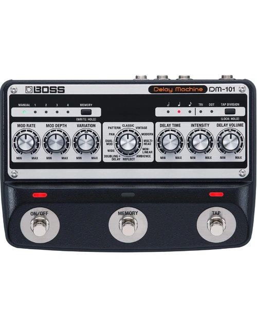 This pedal offers more than just exceptional sound. It boasts tap tempo, note subdivisions, carryover repeats, and four onboard memory slots for storing presets. Expand your control with footswitches or an expression pedal, and dive into the realm of MIDI for advanced functionalities. The DM-101 adapts to your setup, allowing for blended or wet/dry configurations.