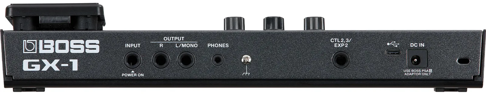 | Controls | DOWN switch, UP switch, CTL1 switch, EXP1 switch, DOWN button, UP button, MENU button, EXIT button, ENTER button, 1-3 knobs, EXP1 pedal, FX1/COMP button, OD/DS button, AMP/CAB button, FX2/EQ button, FX3/MOD button, DELAY button, REVERB button, EDIT button, PEDAL FX button |