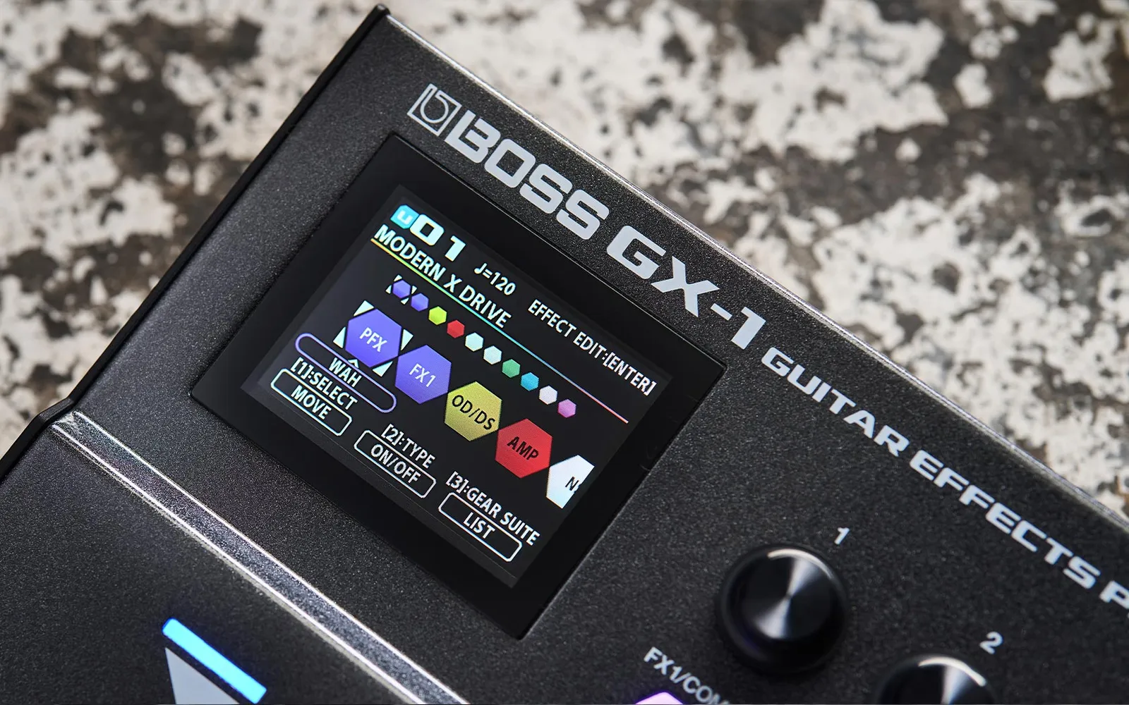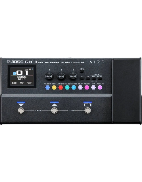 The Boss GX-1 packs serious amp modelling and effects power into a compact, travel-ready multi-effects pedal built for practice, recording, and live use. Drawing on the GX series sound engine, it delivers expressive AIRD amp tones and a wide range of effects with smooth, intuitive control via a colour display and dedicated effect buttons.