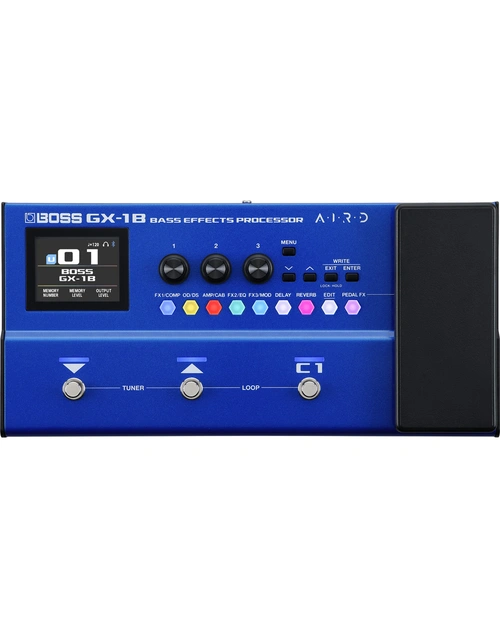 The Boss GX-1B is a compact multi-effects processor built specifically for bass players who want premium tone in a portable format. Drawing on AIRD amp modelling and bass-tuned effects, it delivers punchy, responsive sound for practice, recording, and live use. Sixteen expressive bass amp models and over 130 effects can be arranged freely across eight simultaneous blocks, alongside volume and noise suppression.