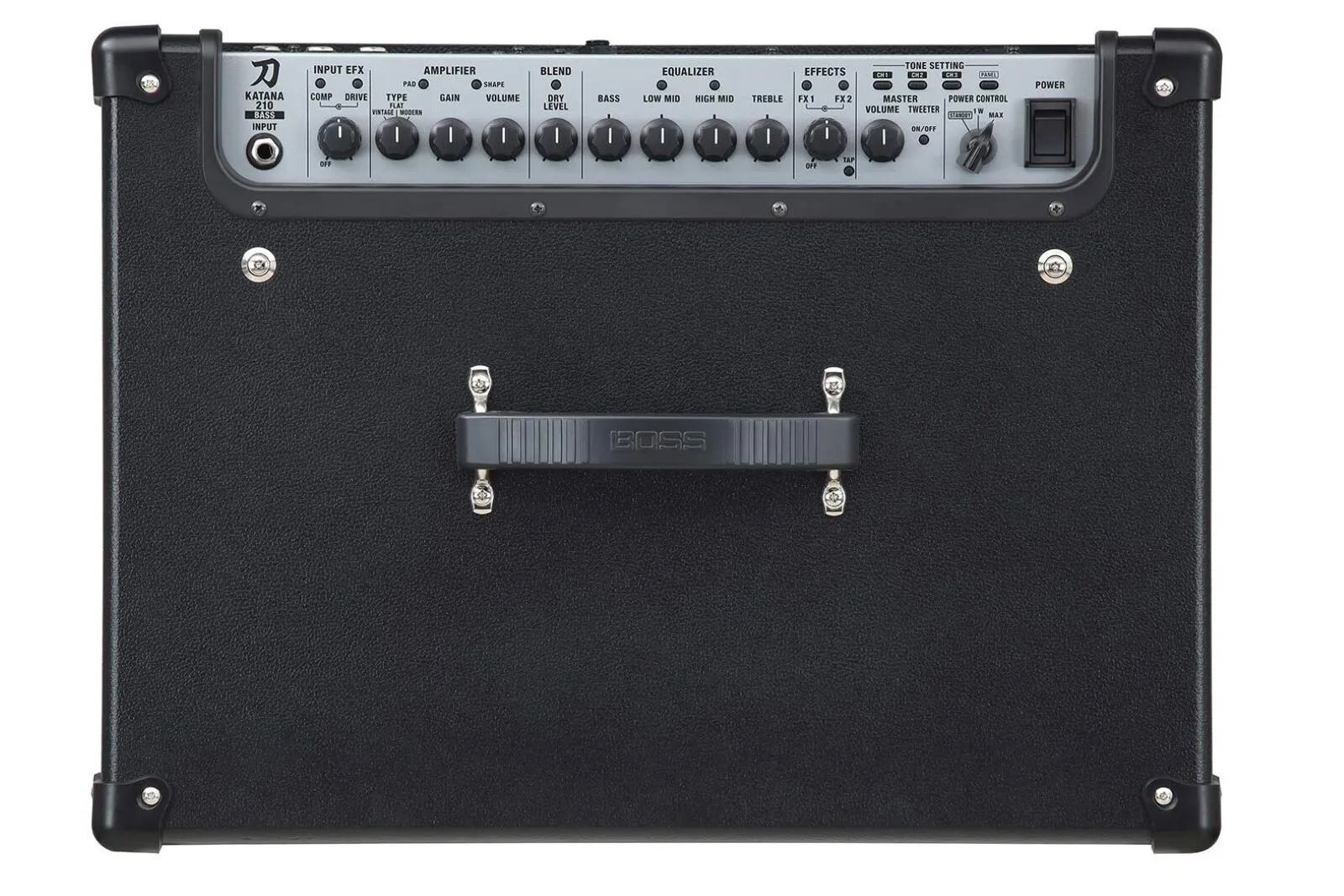 The Katana-210 Bass Amp brings you high-performance amplification fuelled by decades of BOSS knowledge and expertise. Armed with 160 watts of time-tested class AB power, this gig-ready amp provides big volume, punch, and presence and smooth, natural drive as you turn up the gain. Three unique preamp types are also available, each with a powerful three-way Shape switch to fine-tune the character, so you’ll always have the perfect sound for any style or genre.The Vintage preamp type features a classic tube voice with organic tone and natural drive, while the Flat preamp type has a smooth, clear, and dynamic tone with rich harmonic character. The Modern preamp type has a quick dynamic response with extended bass range.