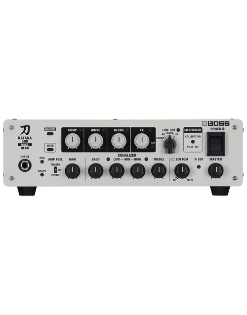 Introducing the Boss KTN-500B HD Katana 500W Bass Amp Head, a compact yet powerful amplifier designed to elevate your bass performance to new heights. With advanced BOSS technology, including a newly developed Class D power amp and innovative Cab Resonance calibration, this amp delivers deeply expressive tones with unparalleled clarity and punch.